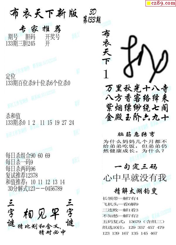 2020133期3d图谜汇总(五)