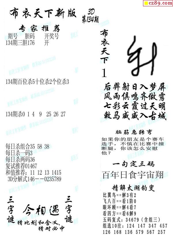 2020134期3d图谜汇总(五)