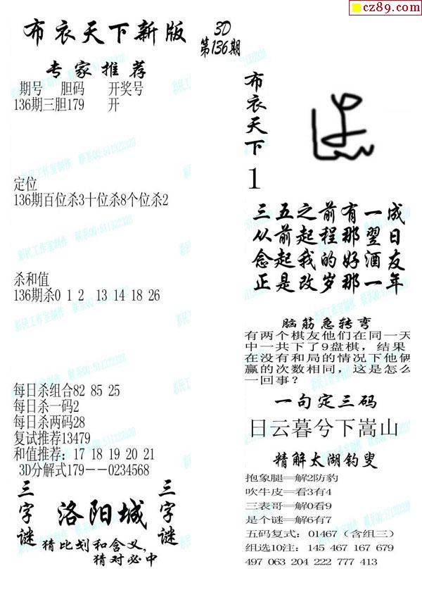 2020136期3d图谜汇总(五)