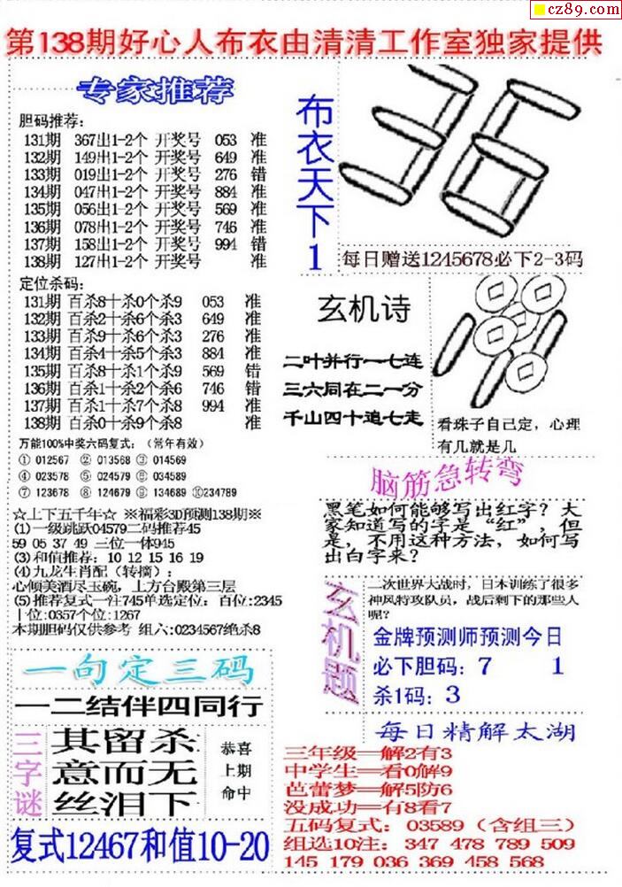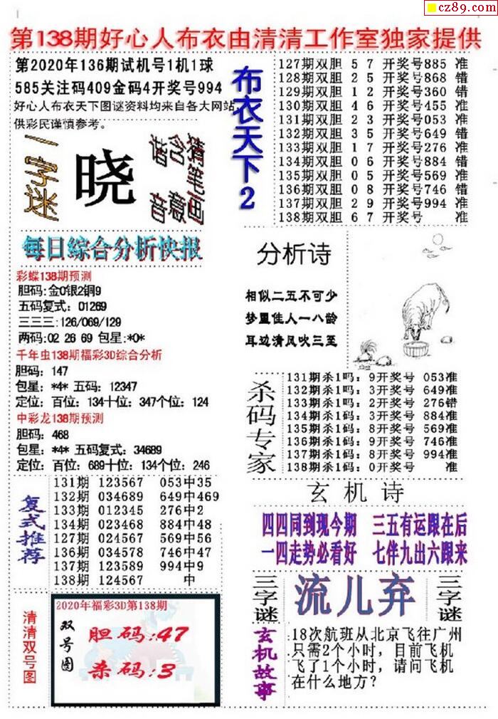 2020138期3D图谜汇总(八)