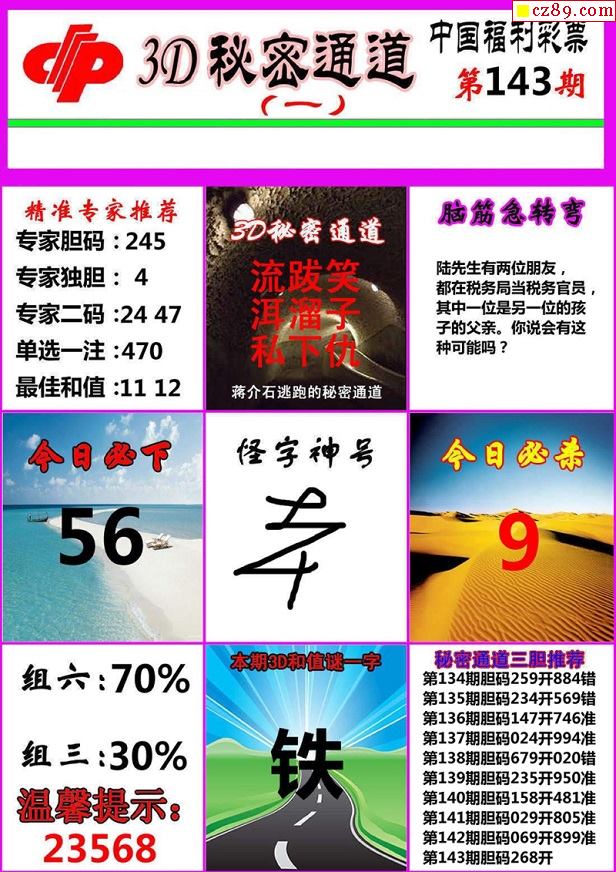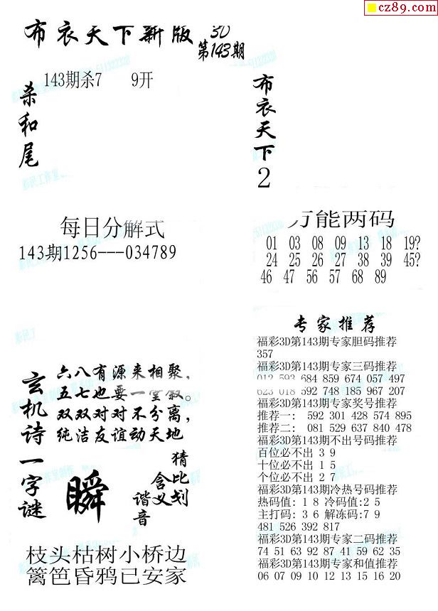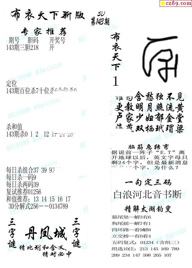 牛彩版3D字谜彩报图26年033期打印版