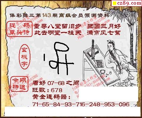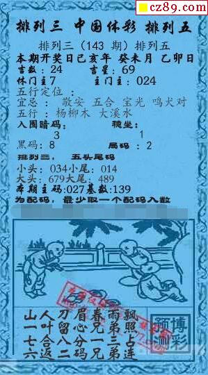 2020年143期牛彩网体彩P3画迷图谜汇总分享
