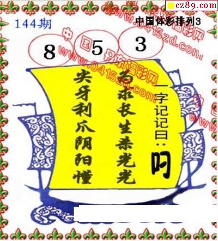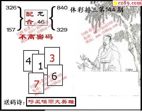 2020年144期牛彩网体彩P3画迷图谜汇总分享