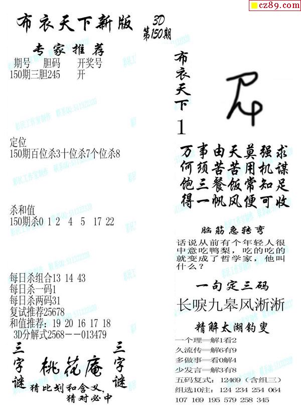 2020150期3d图谜汇总(五)