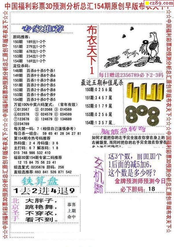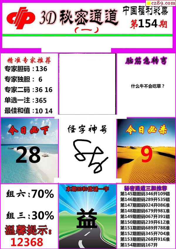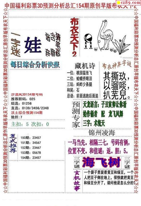 牛彩版3D字谜彩报图26年069期打印版