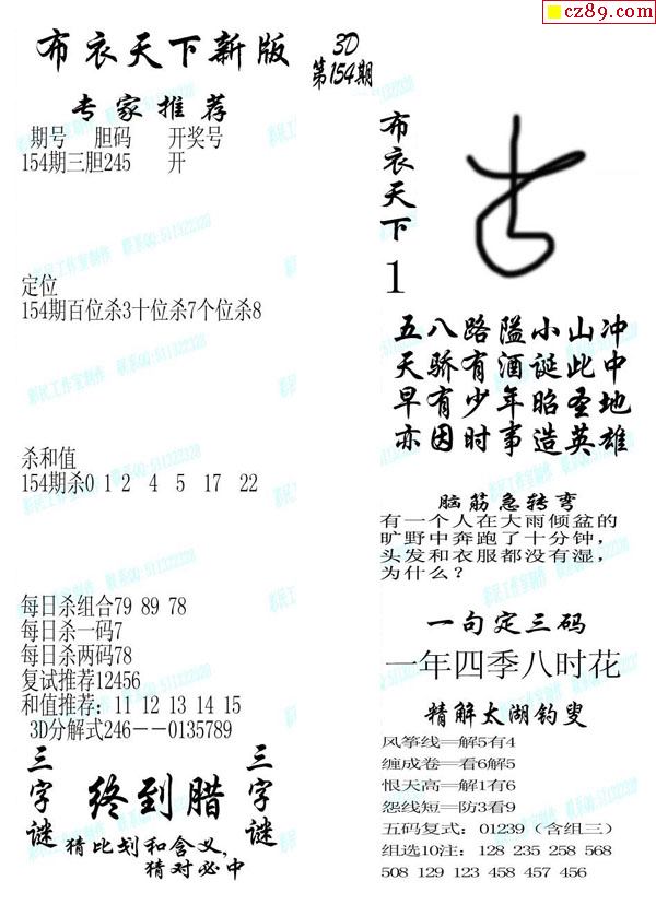 2020154期3d图谜汇总(五)