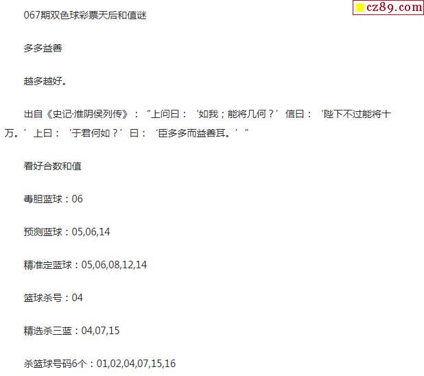 2020年067期牛彩网双色球字迷图谜汇总