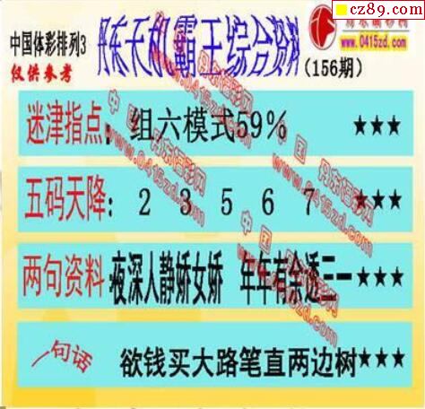2020年156期牛彩网体彩P3画迷图谜汇总分享