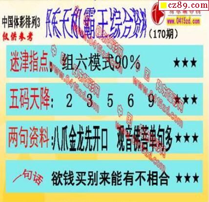 2020年170期牛彩网体彩P3画迷图谜汇总分享