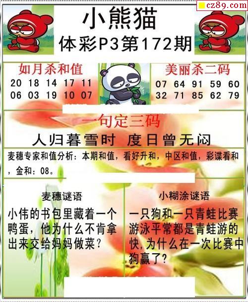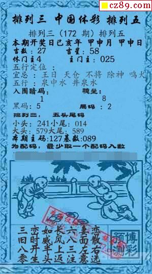 2020年172期牛彩网体彩P3画迷图谜汇总分享