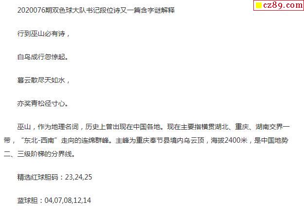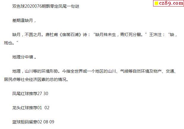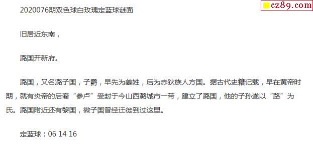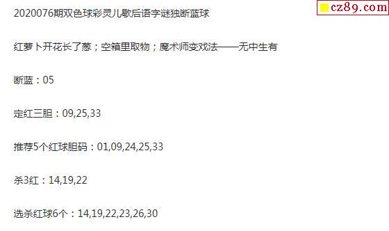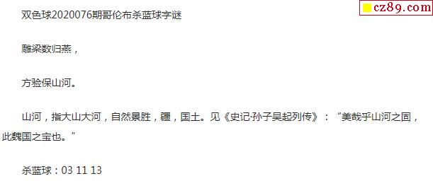 2020年076期牛彩网双色球字迷图谜汇总