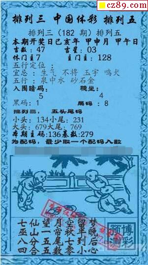 2020年182期牛彩网体彩P3画迷图谜汇总分享