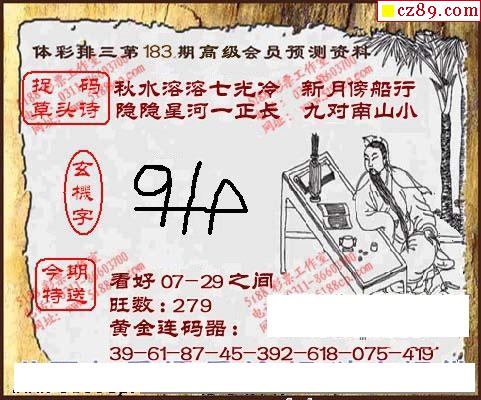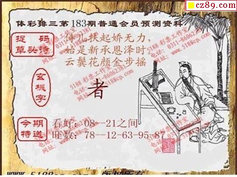 2020年183期牛彩网体彩P3画迷图谜汇总分享