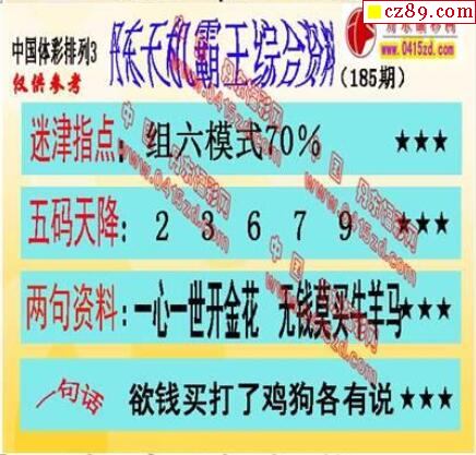 2020年185期牛彩网体彩P3画迷图谜汇总分享