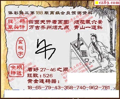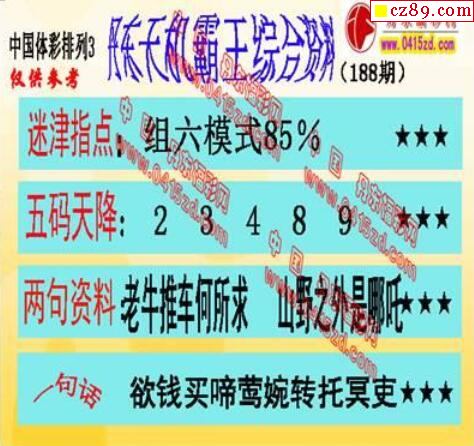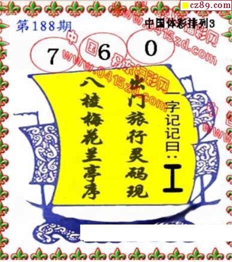 2020年188期牛彩网体彩P3画迷图谜汇总分享