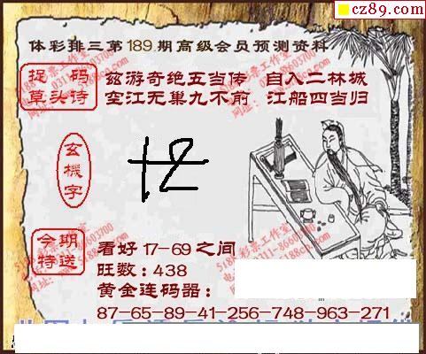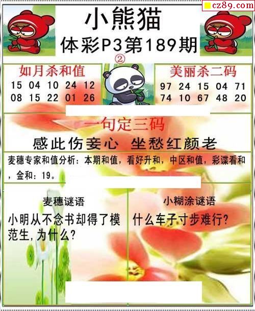 2020年189期牛彩网体彩P3画迷图谜汇总分享