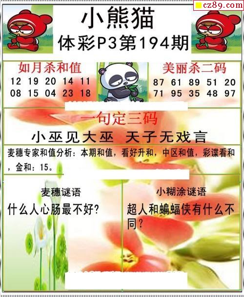 2020年194期牛彩网体彩P3画迷图谜汇总分享