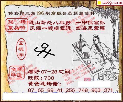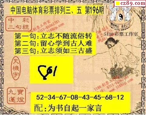 2020年196期牛彩网体彩P3画迷图谜汇总分享