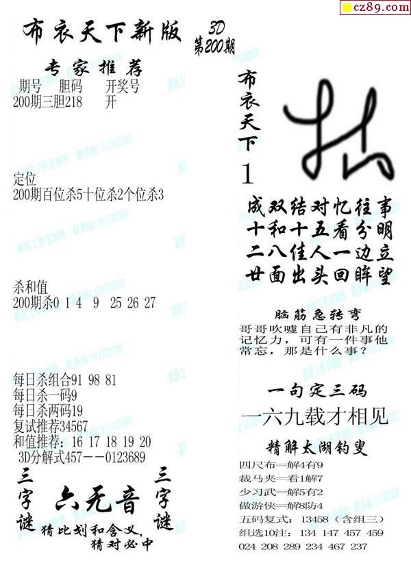 2020200期3d图谜汇总(五)
