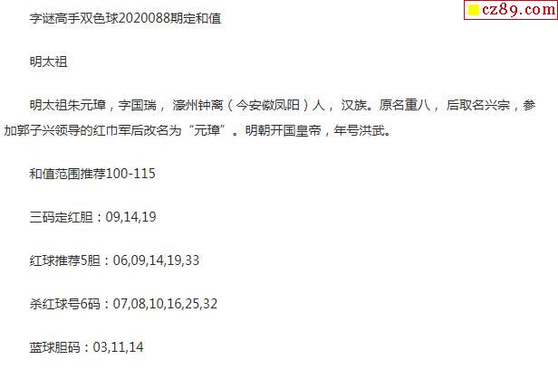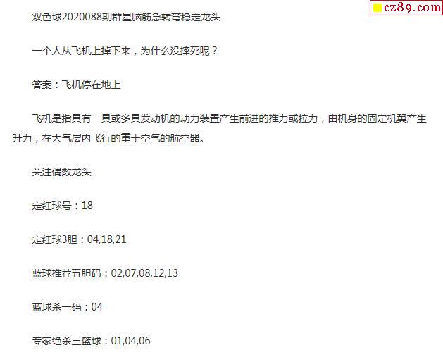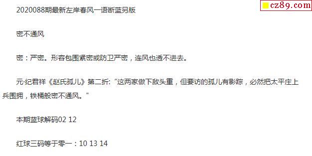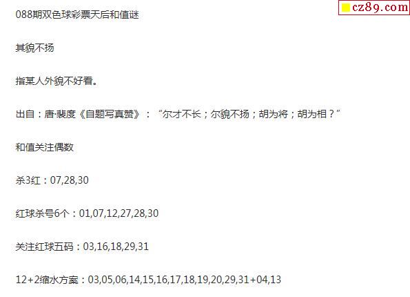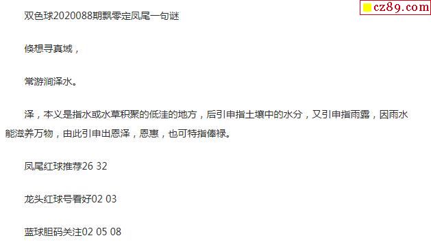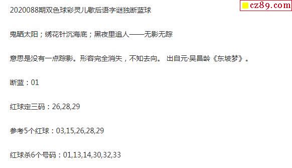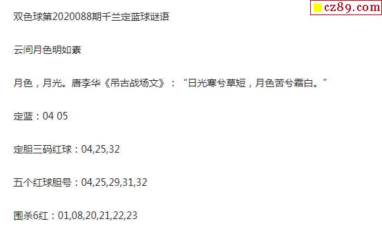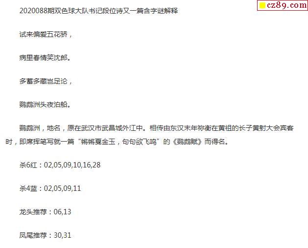 2020年088期牛彩网双色球字迷图谜汇总