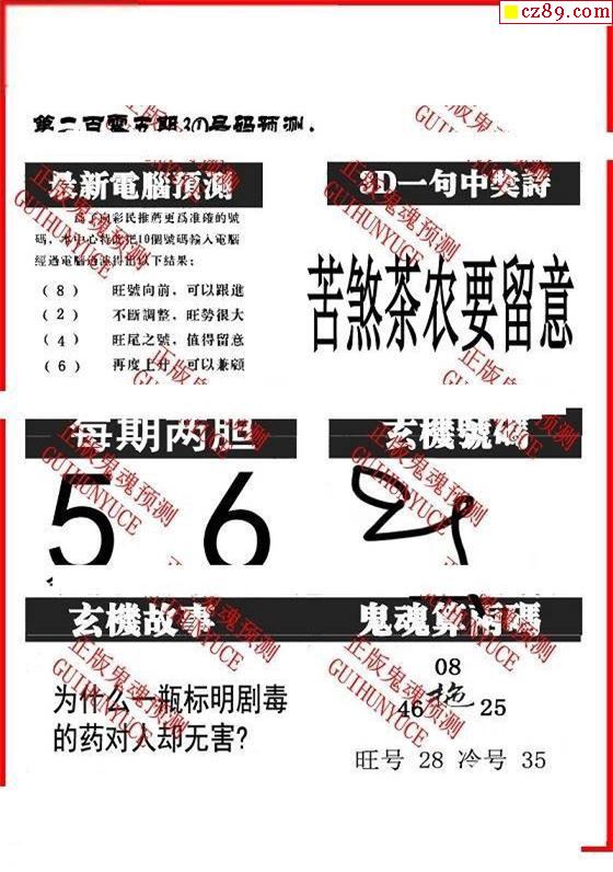 牛彩版3D字谜彩报图25年325期打印版