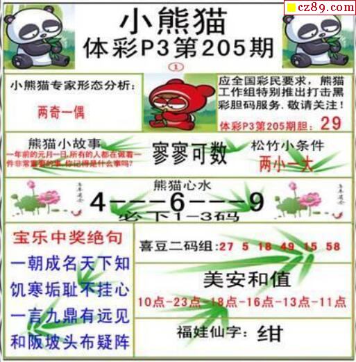 2020年205期牛彩网体彩P3画迷图谜汇总分享