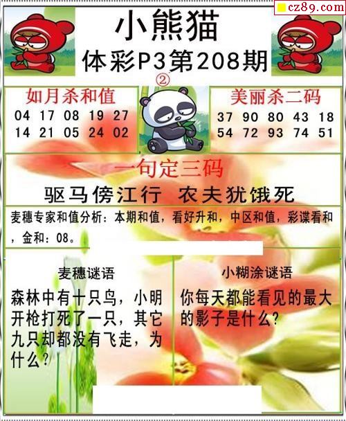 2020年208期牛彩网体彩P3画迷图谜汇总分享