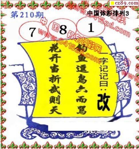 2020年210期牛彩网体彩P3画迷图谜汇总分享