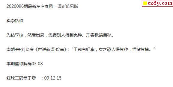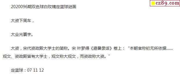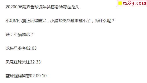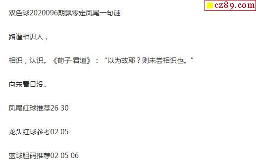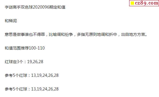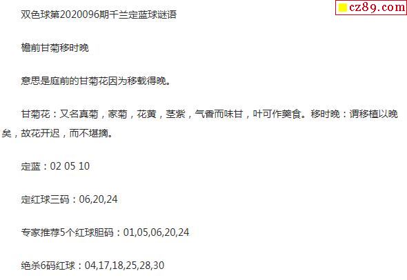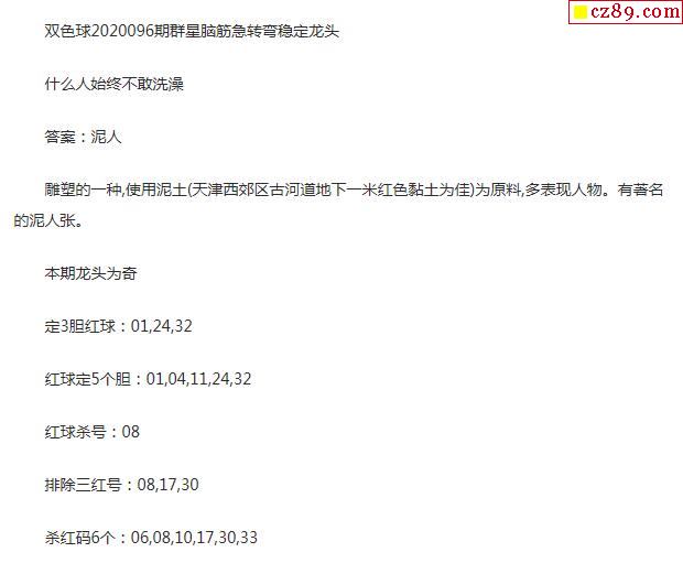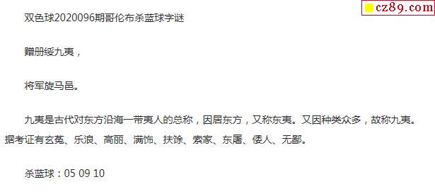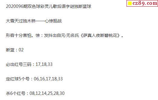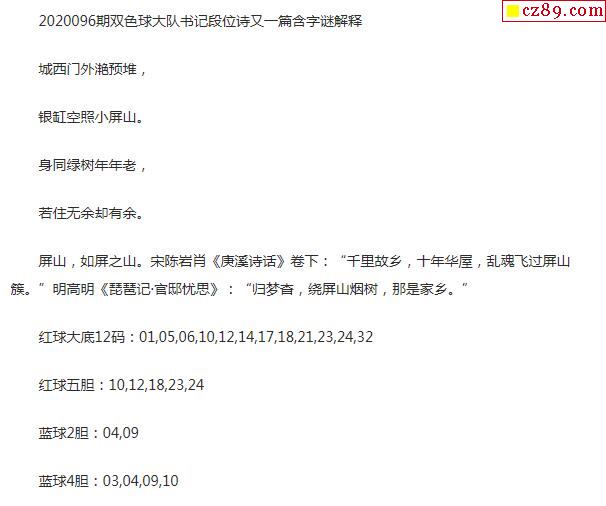 2020年096期牛彩网双色球字迷图谜汇总