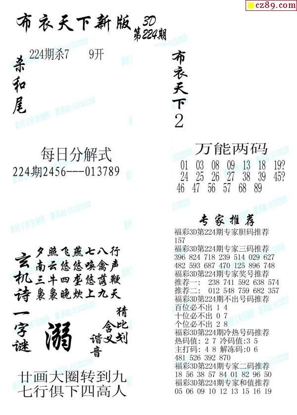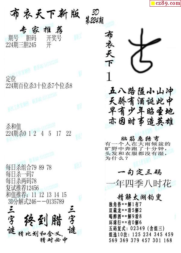 牛彩版3D字谜彩报图26年066期打印版