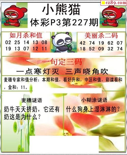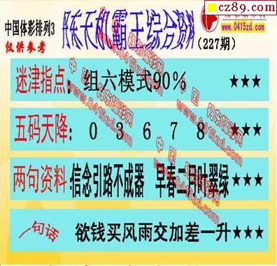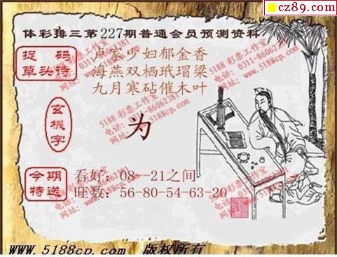 2020年227期牛彩网体彩P3画迷图谜汇总分享