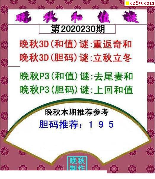 晚秋和值谜2026074期3d图谜