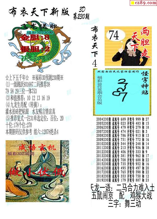 早版布衣2026074期3d图谜