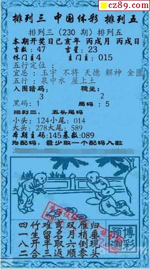 2020年230期牛彩网体彩P3画迷图谜汇总分享