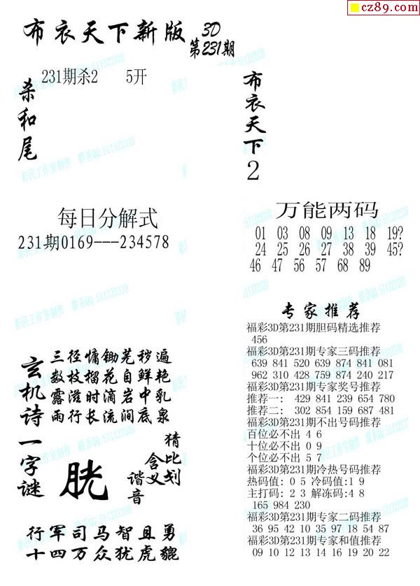 25福彩3d333期真版荆楚玄机彩报