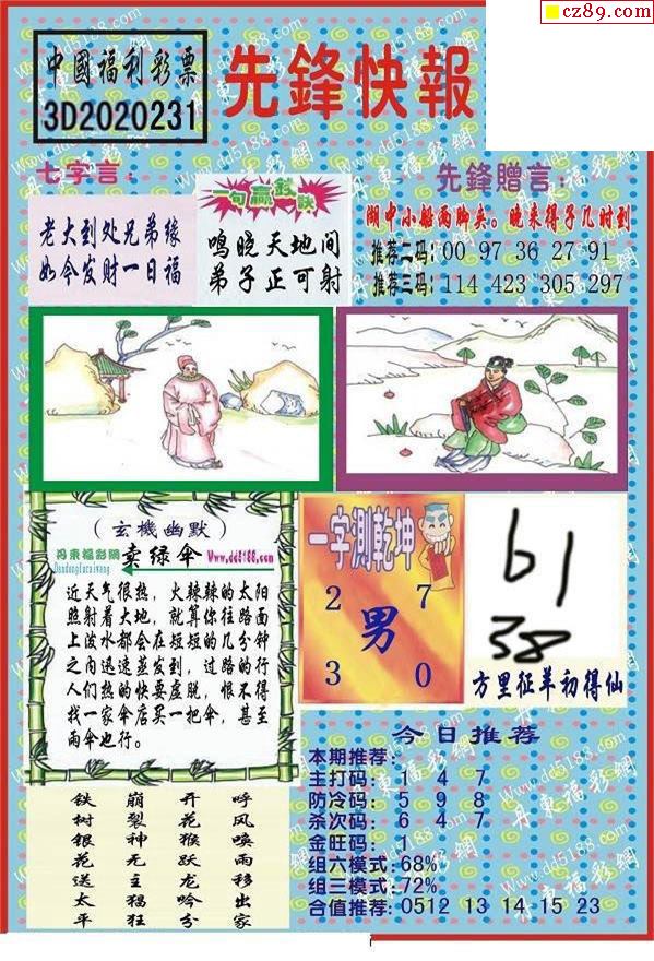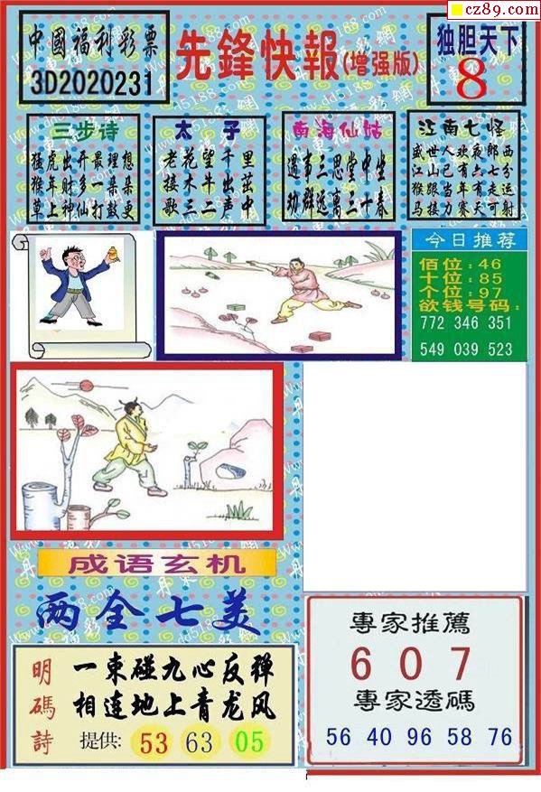 福彩3D2025332期 祁连牧哥百财纳福胆码图谜推荐