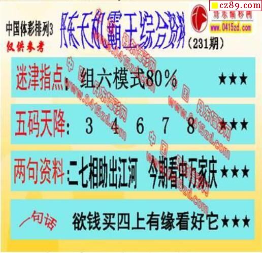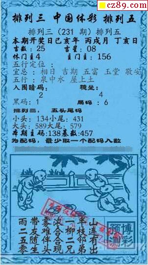 2020年231期牛彩网体彩P3画迷图谜汇总分享