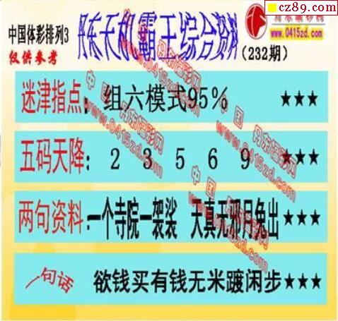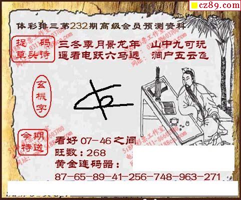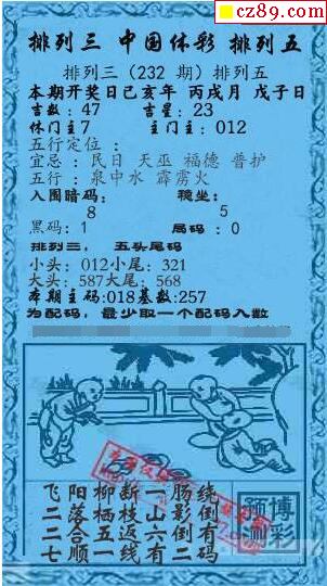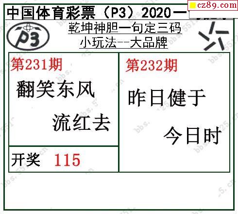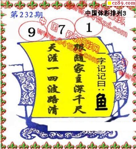 2020年232期牛彩网体彩P3画迷图谜汇总分享
