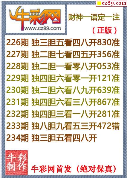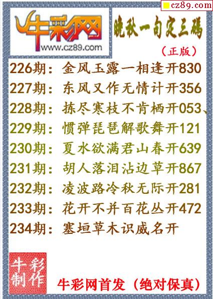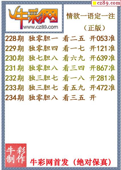 牛彩版3D字谜彩报图26年030期打印版