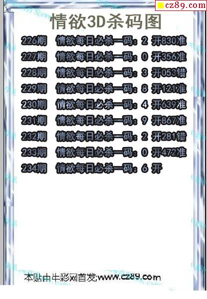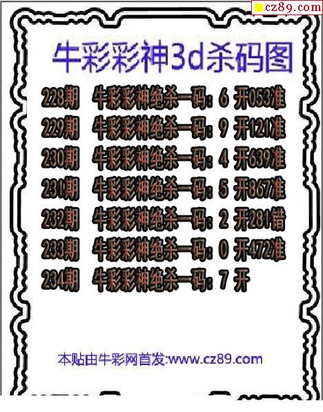 牛彩版3D预测彩报图26年030期打印版