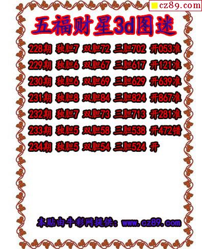 福彩3D2026030期牛彩图谜预测汇总