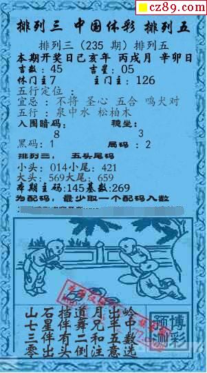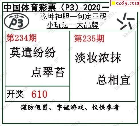 2020年235期牛彩网体彩P3画迷图谜汇总分享