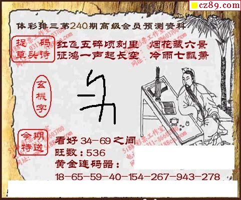 2020年240期牛彩网体彩P3画迷图谜汇总分享