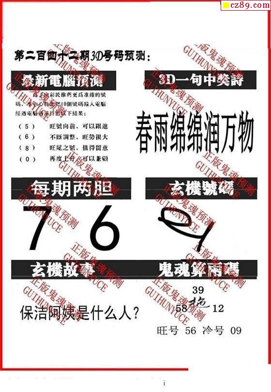牛彩版3D字谜彩报图25年330期打印版