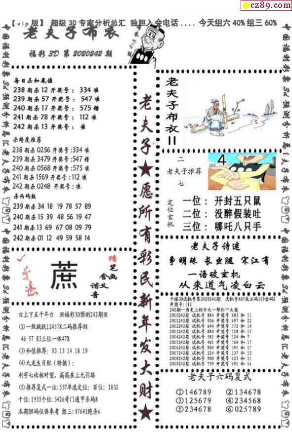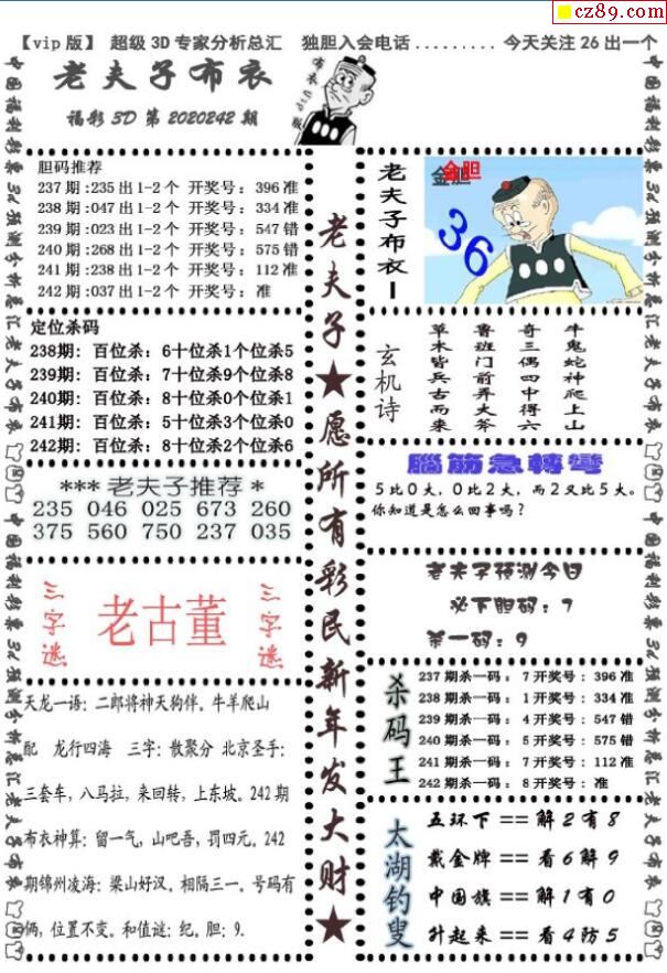 老夫子布衣2026018期3d图谜