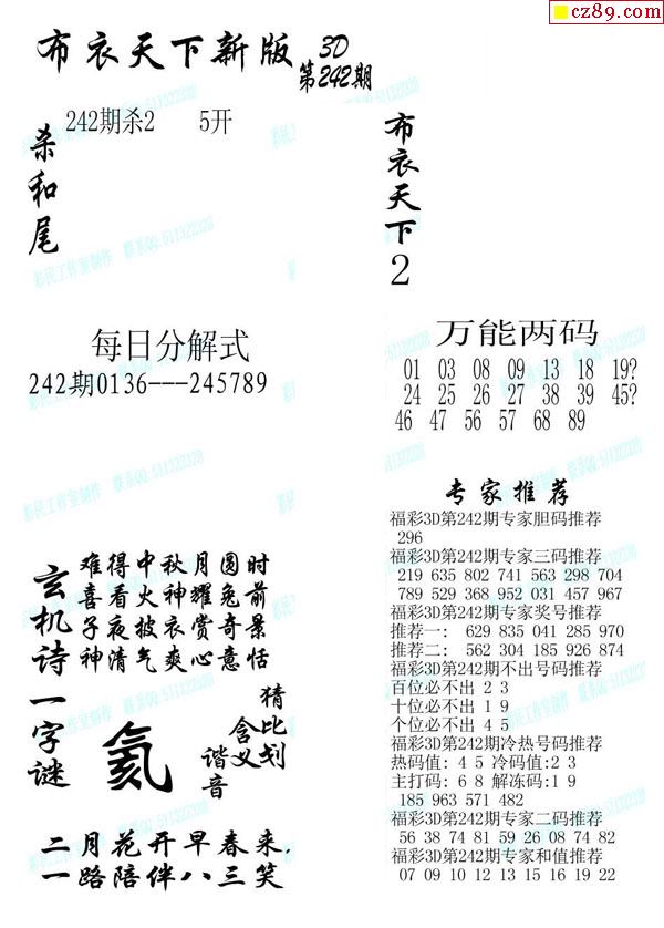 2020242期3d图谜汇总(五)