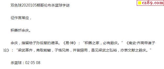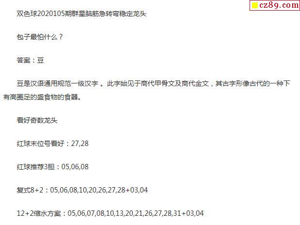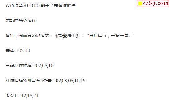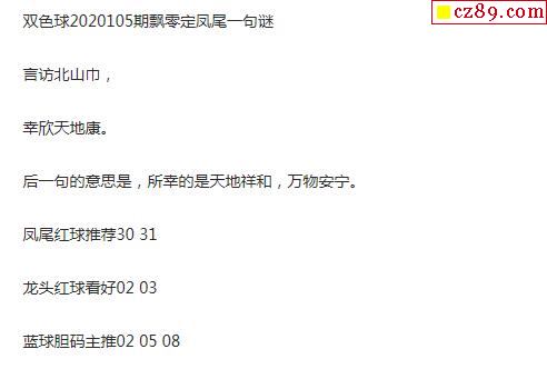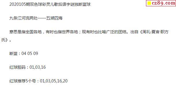 2020年105期牛彩网双色球字迷图谜汇总
