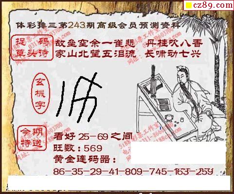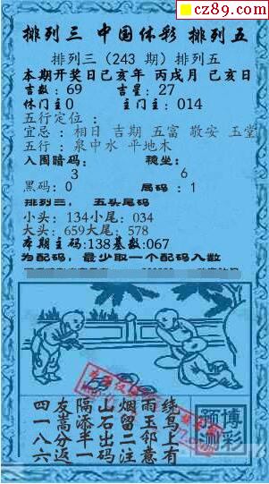 2020年243期牛彩网体彩P3画迷图谜汇总分享