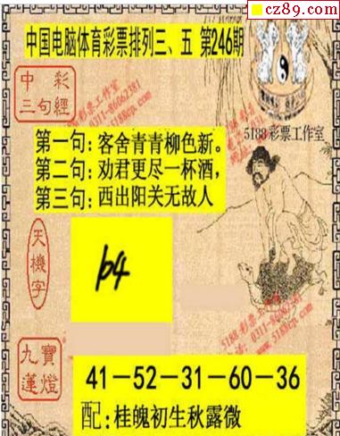 2020年246期牛彩网体彩P3画迷图谜汇总分享