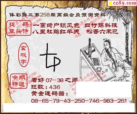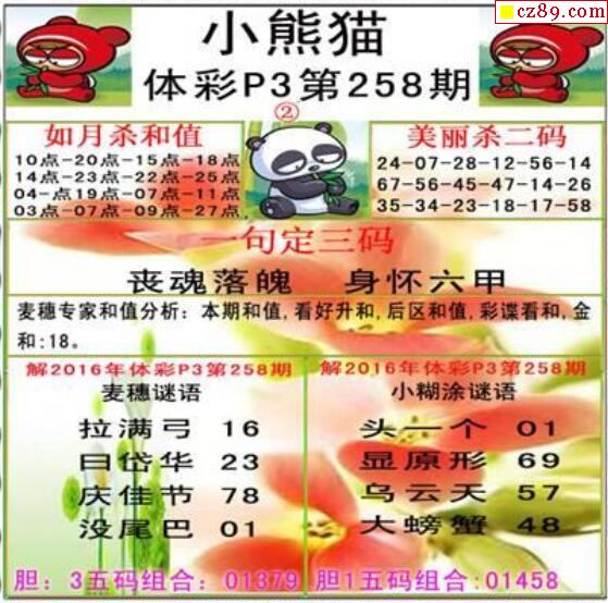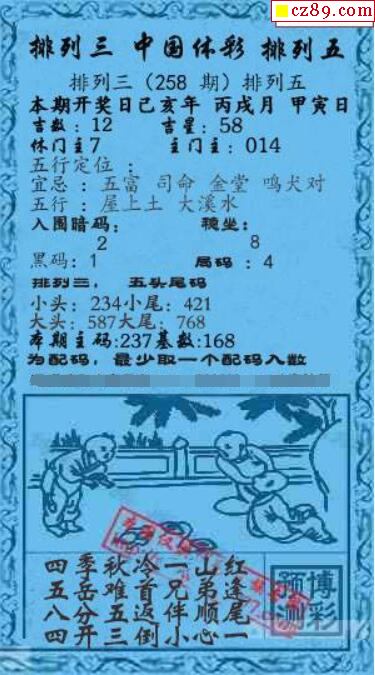 2020年258期牛彩网体彩P3画迷图谜汇总分享